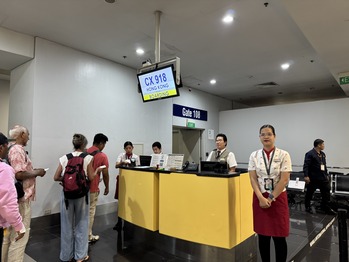 キャセイの快適なビジネスクラスラウンジで過ごしたあと定刻から30分遅れて搭乗が開始された?CX918 A330-300(33E) マニラ発17時45分→香港着 20時25分···